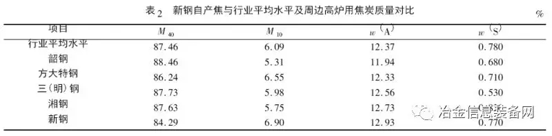 通過(guò)選擇合理渣系、加強(qiáng)管理、取消中心加焦冶煉等措施,實(shí)現(xiàn)了新鋼2 500 m3 高爐低品位、高比例燒結(jié)礦爐料結(jié)構(gòu)下的爐況長(zhǎng)期穩(wěn)定順行。同時(shí),其技術(shù)經(jīng)濟(jì)指標(biāo)與行業(yè)同類型高爐指標(biāo)對(duì)比,在新鋼2 500 m3 高爐入爐品位低于行業(yè)平均水平0. 81%的情況下,新鋼燃料比較行業(yè)水平低35. 95 kg /t,煤比高12. 57 kg /t,綜合焦比降低38. 06 kg /t。