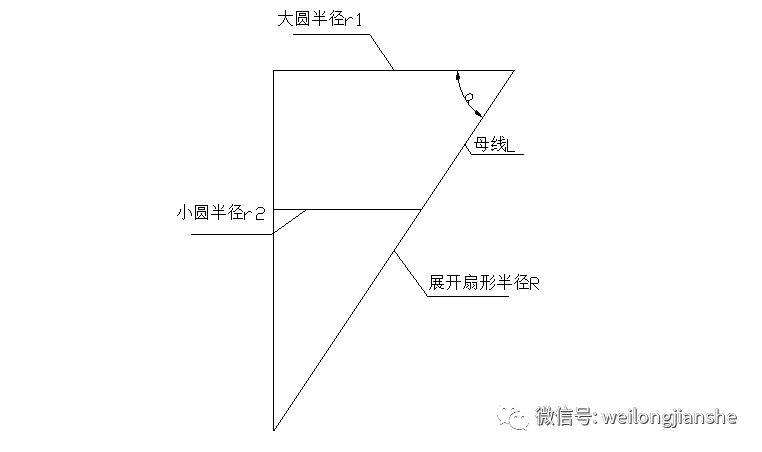 ② 爐殼如果是圓柱體只要知道圓柱體的高和底圓周長***能求出展開長方形的長和寬,這里不予以詳細(xì)介紹,主要說一下錐臺展開,首先要找到圖紙給出的大圓半徑r1和小圓半徑r2還有母線長L,如下圖: